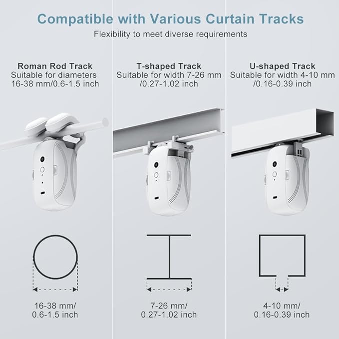 The Smart Curtain Opener is designed to work with most standard curtain rods, but there are some important compatibility considerations: